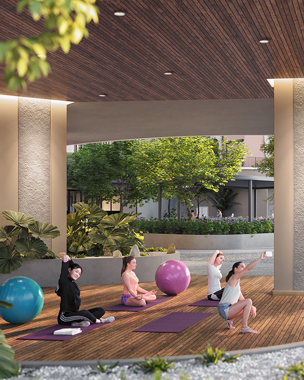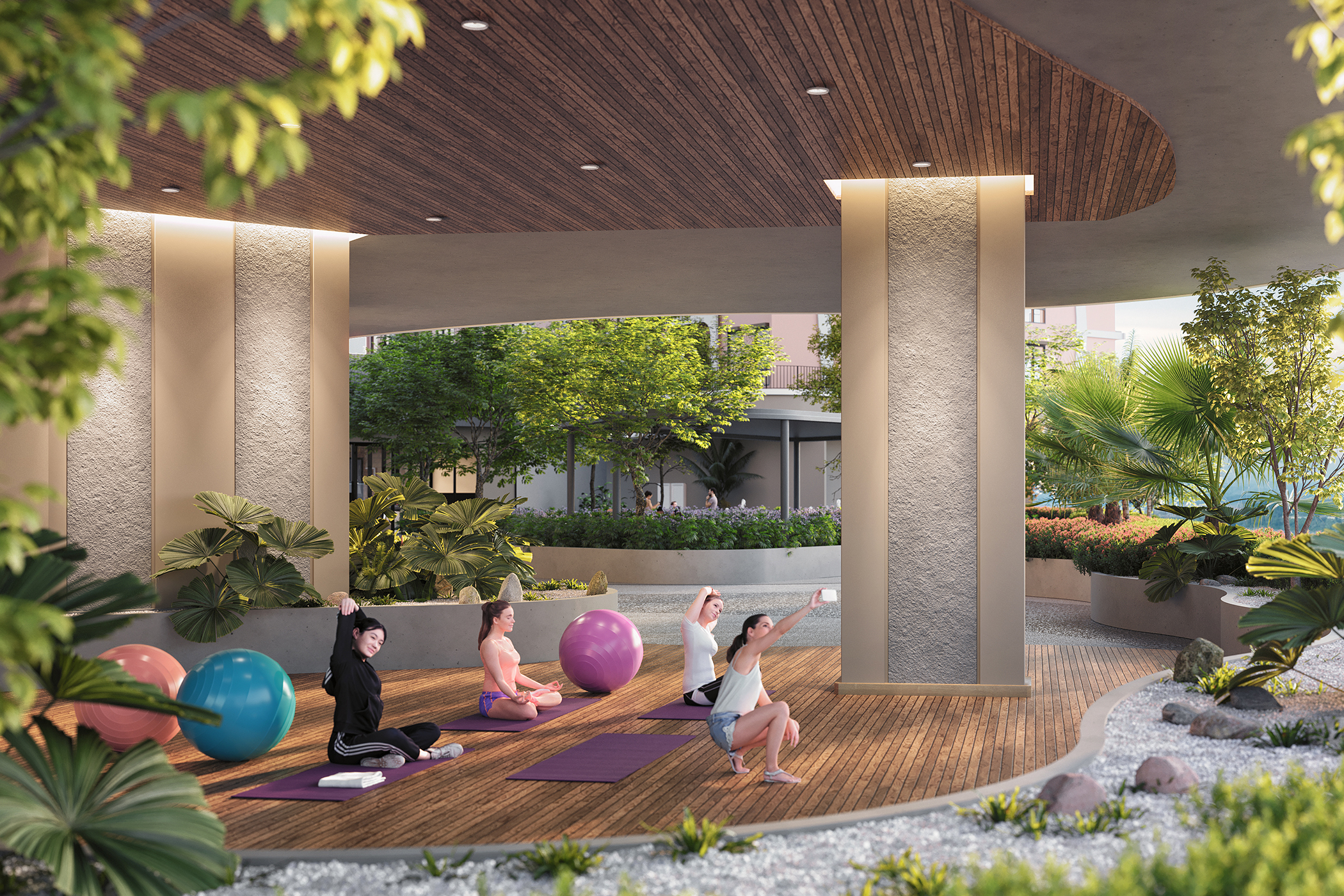 The facilities deck is designed to cater to the needs of SOHO residents, including co-working space, business center, meeting room, beauty spa, gym, swimming pool, sauna, live gourmet kitchen, scene garden, and others